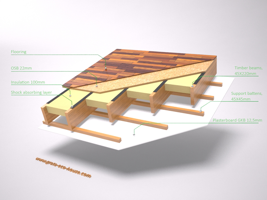 I hus av bindingsverk brukes det materialer som hindrer brann i husets innredning og ferdigbehandling (gipsplater, OSB plater, steinull). Bjelker av laminert limtre som brukes i veggene og etasjeskillere, brenner ikke men ulmer for veldig lang tid, noe som forbedrer deres holdbarhet. De mister ikke styrke ved oppvarming, i motsetning til jernbetongbjelker.